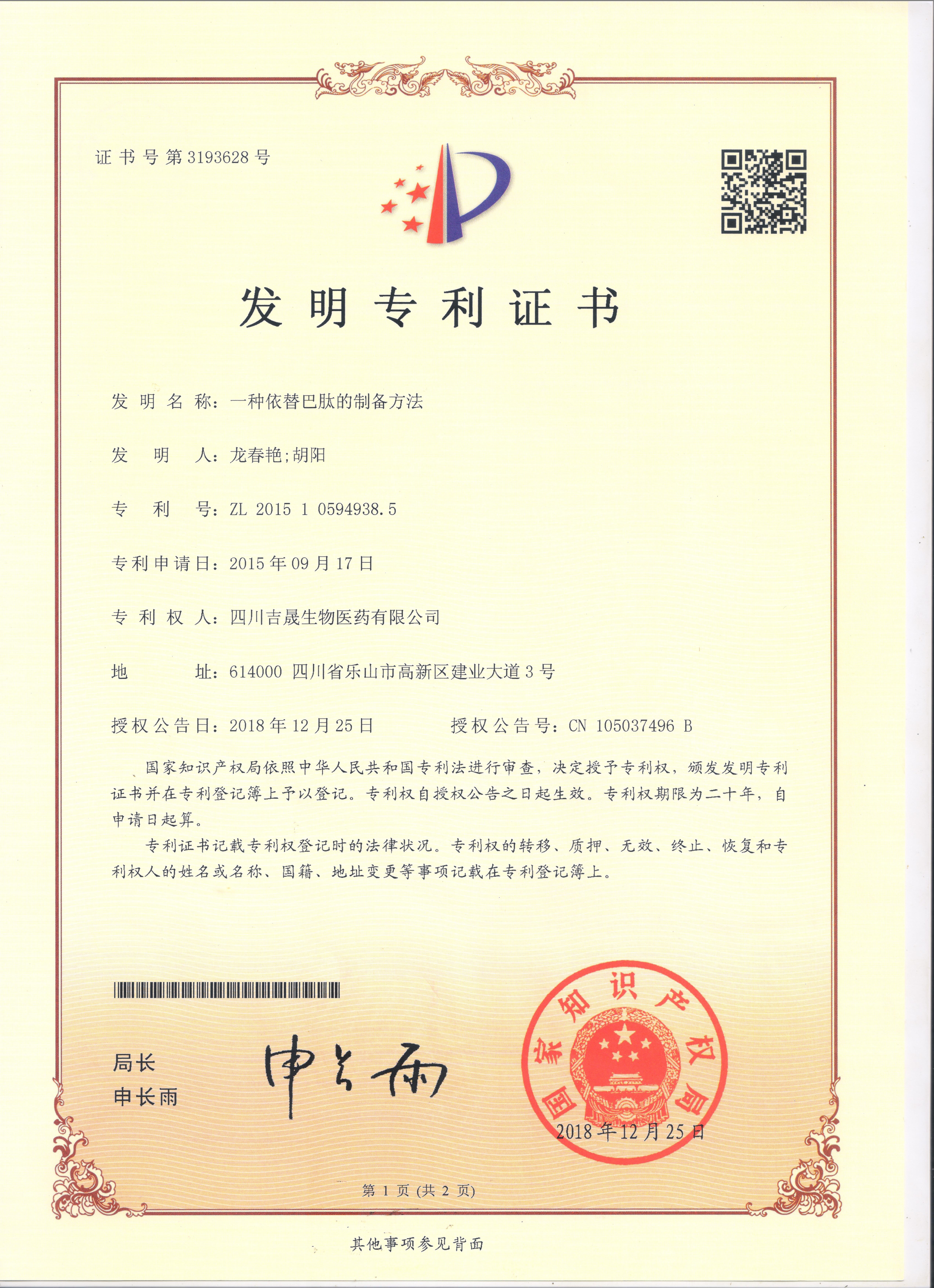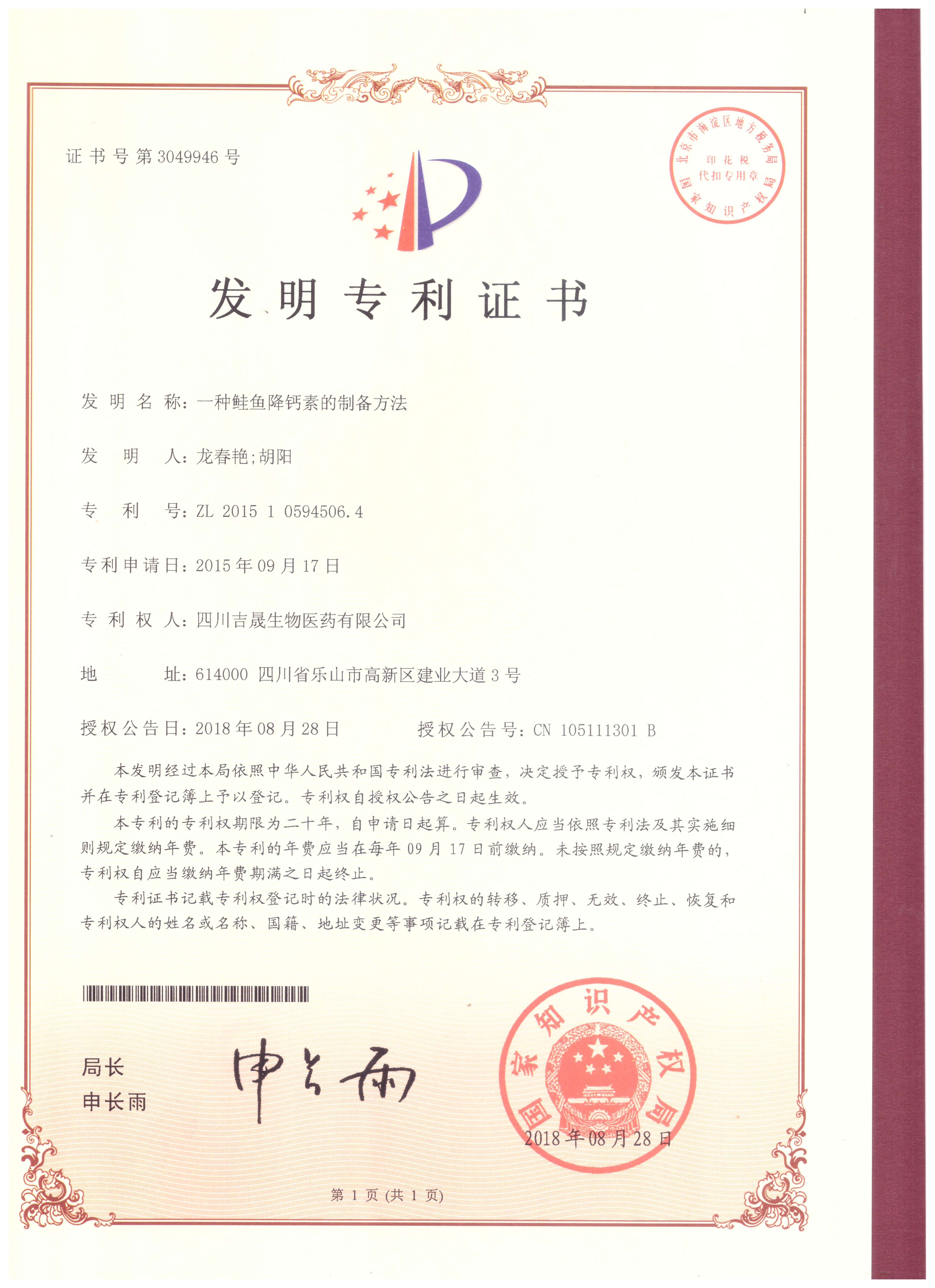 | 生物發(fā)酵專利 依替巴肽專利 鮭魚(yú)降鈣素專利 |